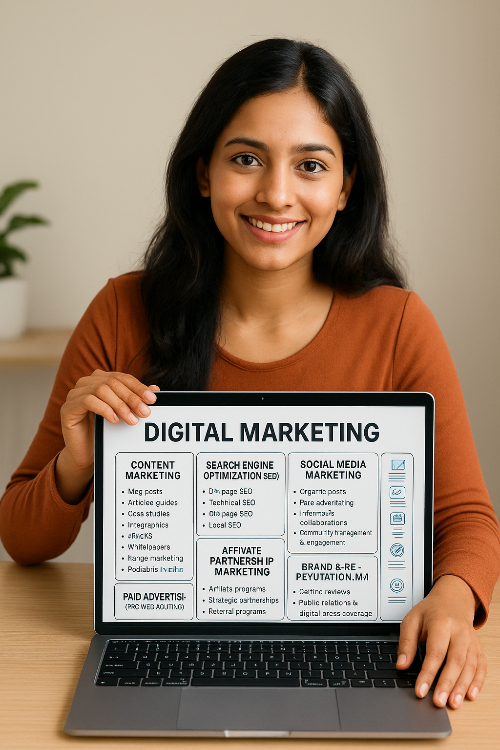 Digital marketing covers a wide range of strategies and tactics you can use to promote a business, product, or service online. Here are the main areas you can focus on: